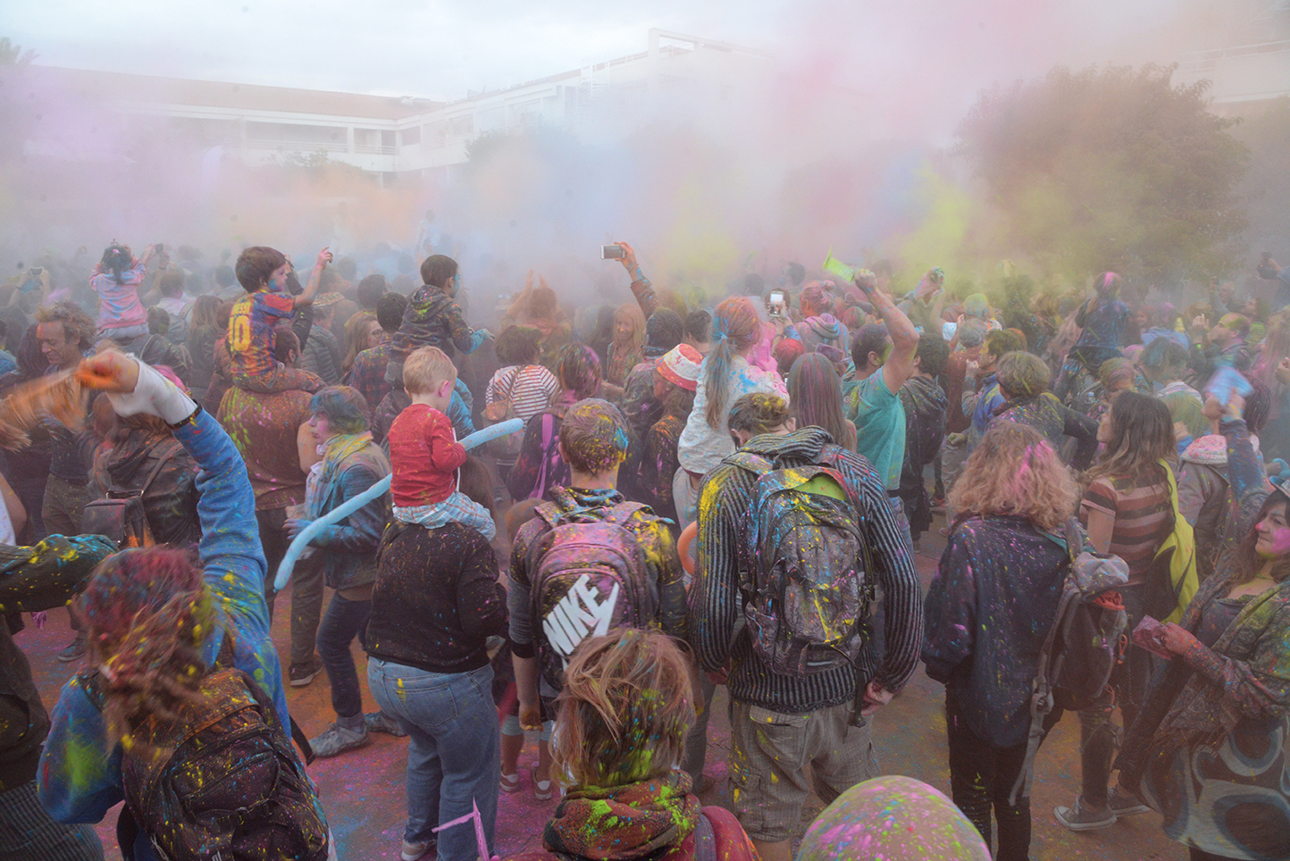 The Color of Time c’est un rituel éphémère, l’envie de partager collectivement une explosion de joie chromatique ; mais aussi que la rue redevienne l’espace de la cohésion et du métissage, symbolisé ici par le mélange des couleurs inspiré de la Holi, traditionnelle fête des couleurs hindoue.
